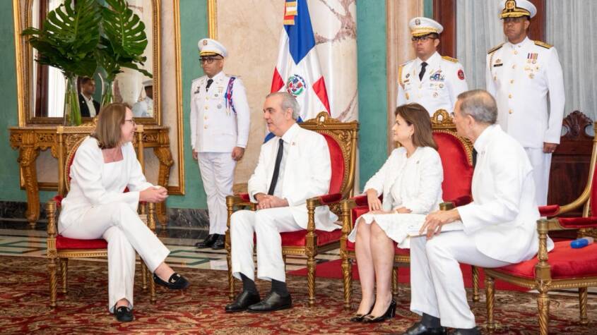 SANTO DOMINGO.- El presidente Luis Abinader, junto con la vicepresidenta Raquel Peña y el ministro de Relaciones Exteriores, Roberto Álvarez, recibió este miércoles las cartas credenciales de seis nuevos embajadores acreditados en la República Dominicana, quienes asumen sus funciones con una amplia trayectoria en el servicio exterior y en diversos ámbitos de la cooperación internacional.